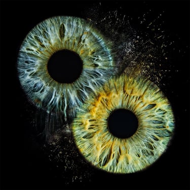Kiedy w naszych galeriach łączymy na jednym obrazie dwie tęczówki – przenikające się wzajemnie, z zachowaniem każdego unikalnego mikrowłókna – tworzymy coś absolutnie niepowtarzalnego.